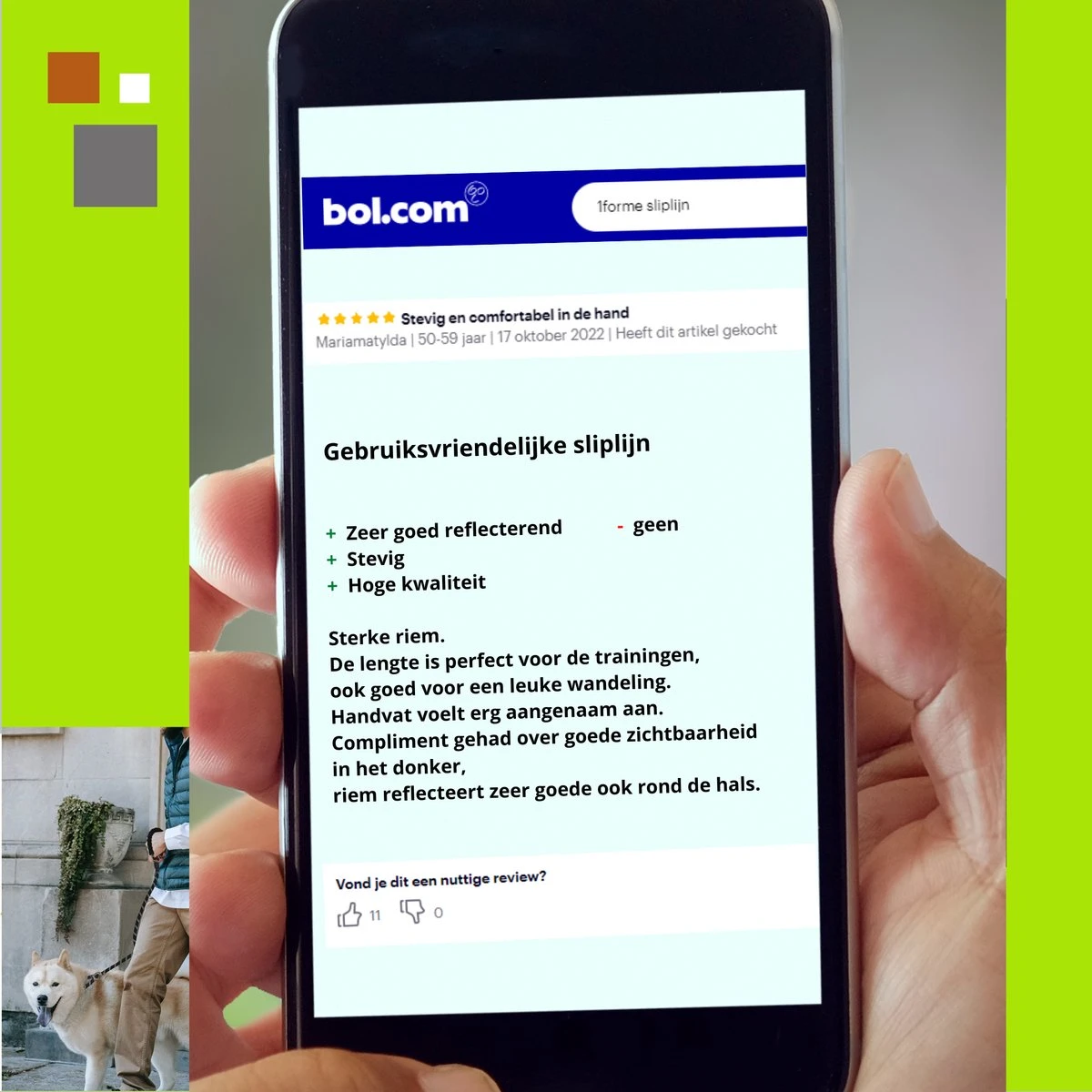 1FORME Hondenriem 15-25kg – Sliplijn Hond REFLECTEREND 2m, 1cm Ø – Jachtlijn 2 Ergonomische Handvaten – Dubbel Stop