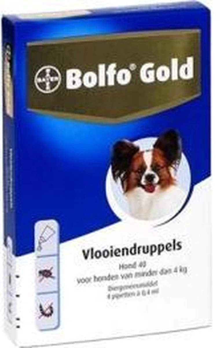 Bolfo Gold biedt een snelle werking tegen vlooien en vlooienlarven. De snelheid van werken is van belang. Zo heeft bijvoorbeeld het huisdier minder last van de aanwezige vlooien en krijgt je de vlooienplaag sneller onder controle. Daarnaast is deze snelheid belangrijk zodat vlooien geen eitjes kunnen leggen, ze niet bijten waardoor een vlooienallergie kan worden tegen gegaan, nieuwe vlooien vanuit de omgeving snel worden gedood. Vlooien zijn ook de tussengastheer van de vlo-lintworm (Dipylidium caninum). Door het snel doden van de vlo, kun je de overdracht van deze worm ook voorkomen. Bolfo Gold® heeft een snelle werking tegen vlooien en vlooienlarven. Veel vlooien worden al gedood voordat ze bijten en bloed zuigen. De toediening is gemakkelijk: u druppelt de inhoud van de pipet tussen de haren van uw hond op de intacte huid.Snelle werking tegen vlooien (