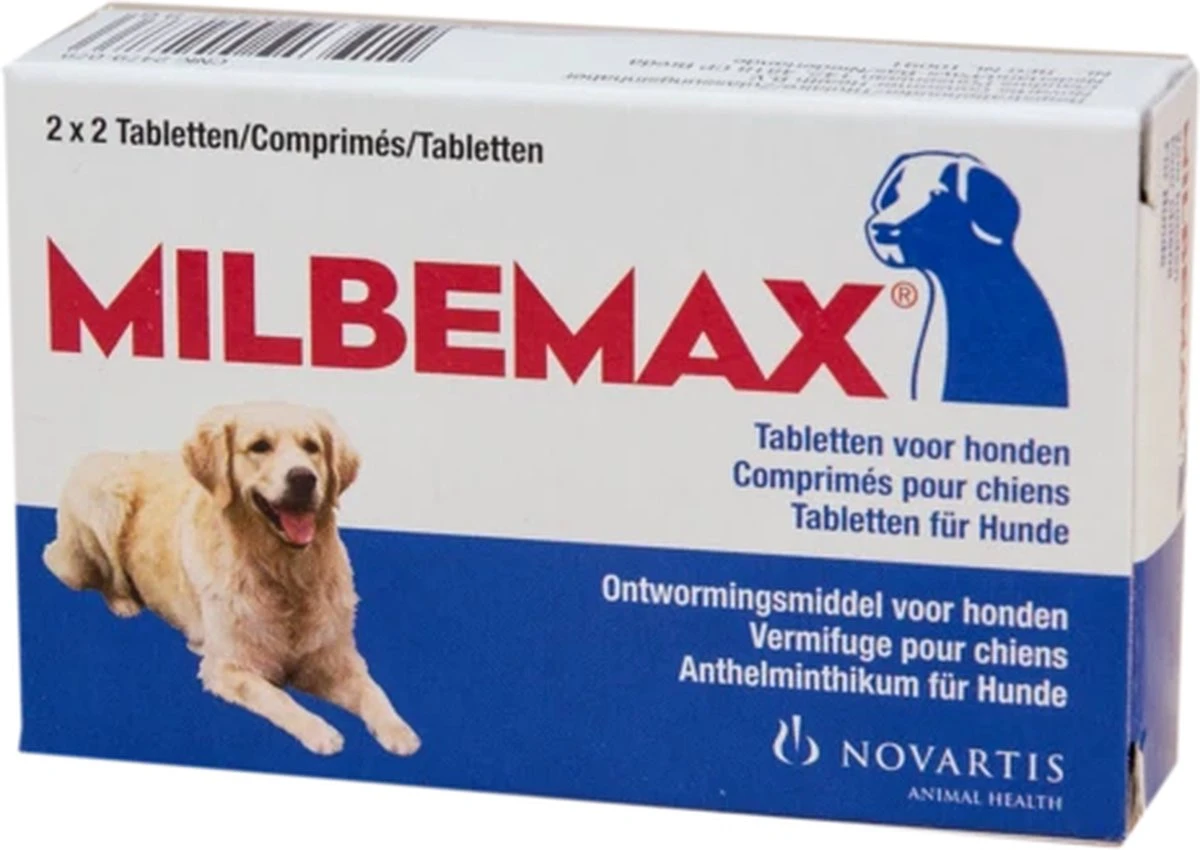 Milbemax ontwormingstabletten dragen bij aan de gezondheid van je huisdier. Dagelijks worden honden via allerlei bronnen blootgesteld aan parasieten, waardoor het onmogelijk is om te voorkomen dat ze in aanraking komen met wormen of hun eitjes. Regelmatig ontwormen is daarom belangrijk voor de gezondheid van je hond – zeker als je hond veel in contact komt met de buitenwereld, andere honden, zandbakken en speelweiden. Daarnaast verminder je door te ontwormen ook het risico op omgevingsbesmetting en daarmee besmetting van het gezin. Met makkelijk toe te dienen tabletten en een aanbevolen ontwormingsschema maakt Milbemax dit eenvoudig. De tabletten vormen een effectieve en breedspectrum behandeling voor puppy’s én volwassen honden, geschikt vanaf 2 weken leeftijd en 0.5kg. Ook geschikt voor drachtige en lacterende honden.