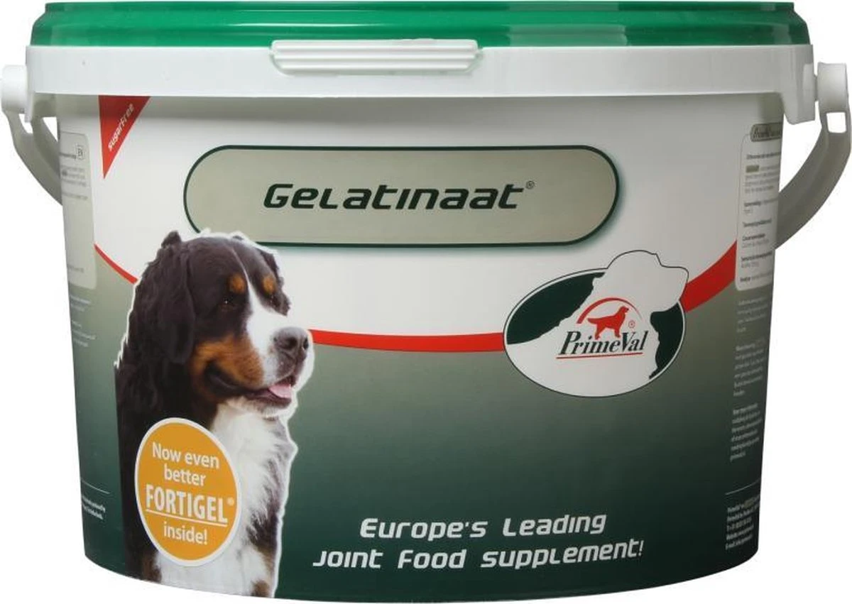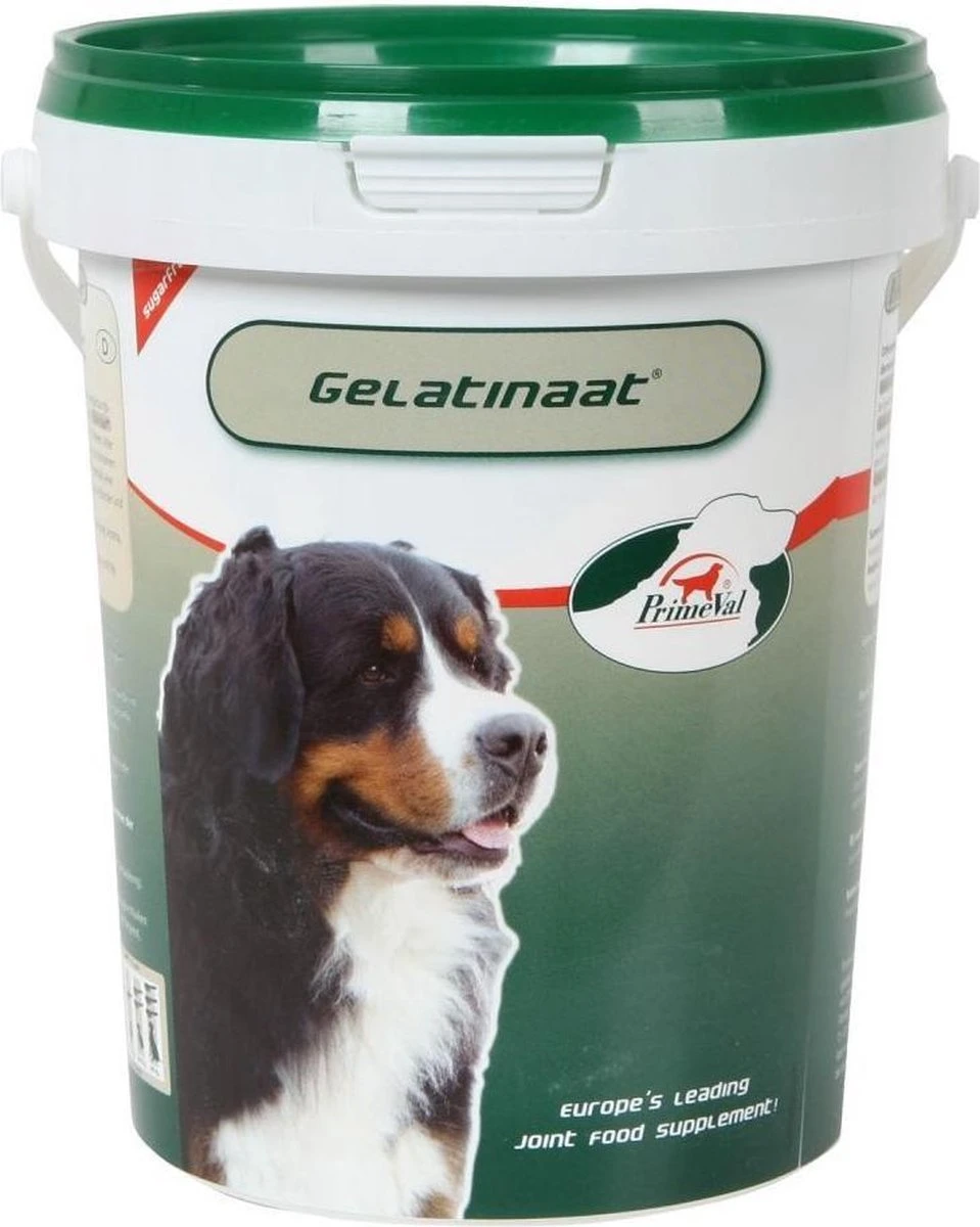 PrimeVal Gelatinaat® bevat bouwstoffen voor het skelet, gewrichtskraakbeen, de huid en de vacht. Tevens zorgt PrimeVal Gelatinaat® dat er voldoende gewrichtssmeer wordt aangemaakt. U zult zien: uw hond gaat zich weer soepeler bewegen.