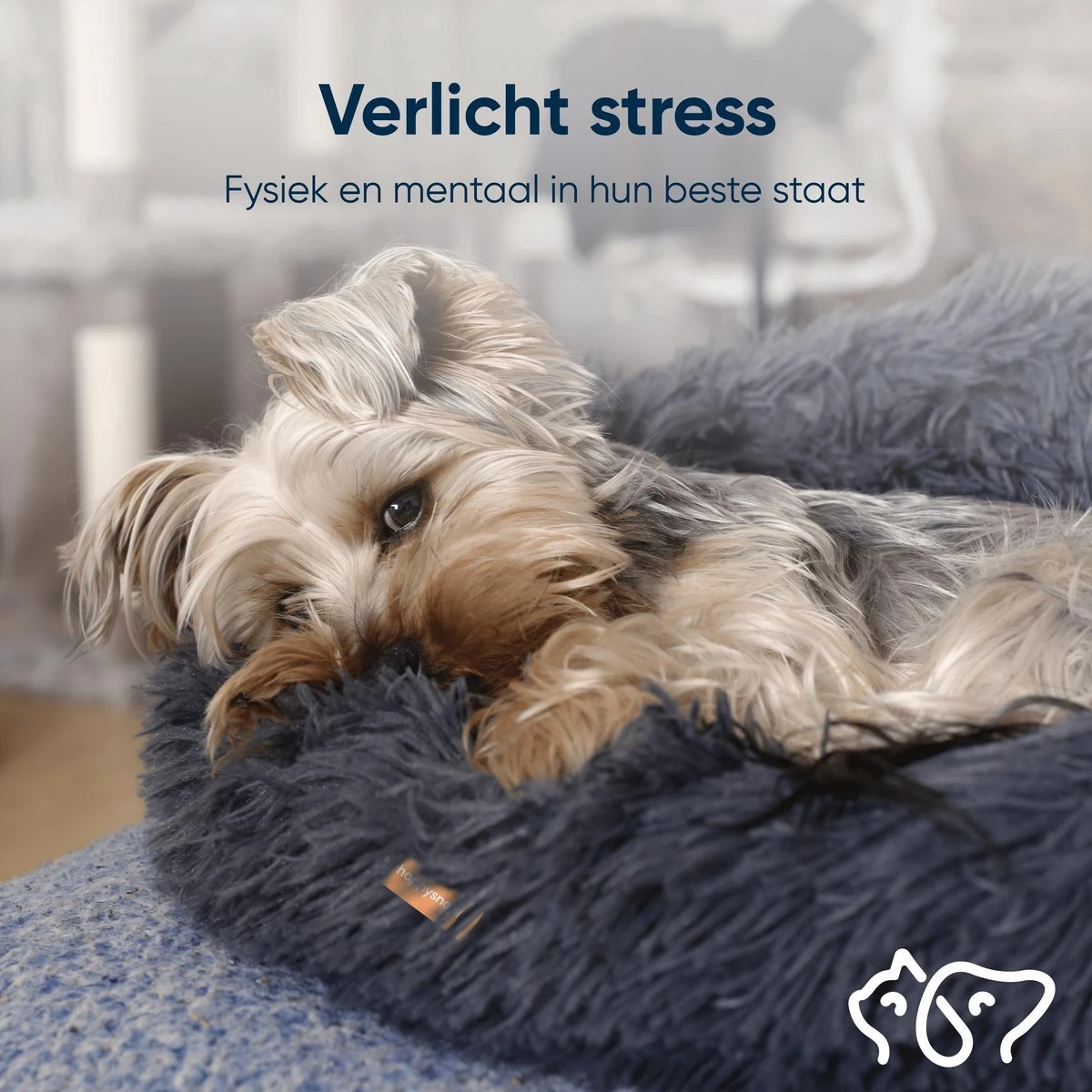STERKE ONDERSTEUNING: De verhoogde donut rand biedt een comfortabel holletje waar je viervoeter zich veilig voelt (→ vermindert stress) en waar hoofd & nek ondersteund worden (→ verlicht spier- en gewrichtspijn).