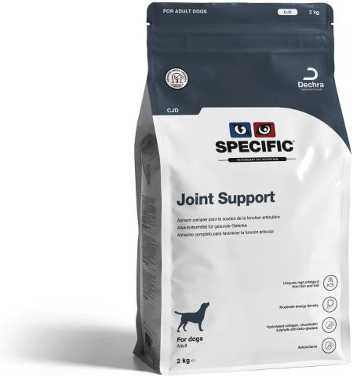 - Specific Joint Support CJD is een uitgebalanceerd dieet met een zeer gematigd energiegehalte, omdat gewrichtsproblemen vaak samengaan met overgewicht.