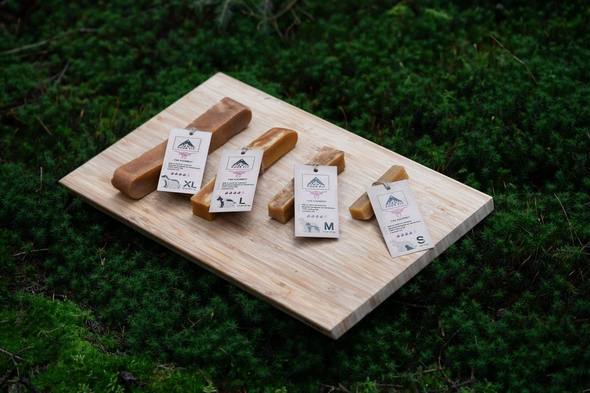 De Yak’s worden traditioneel gemaakt van jakmelk in de Himalaya. De yak is een rundsoort die hoog in de bergen leeft. De Yak kauwbot is heel voedzaam en bovendien erg gezond voor honden.