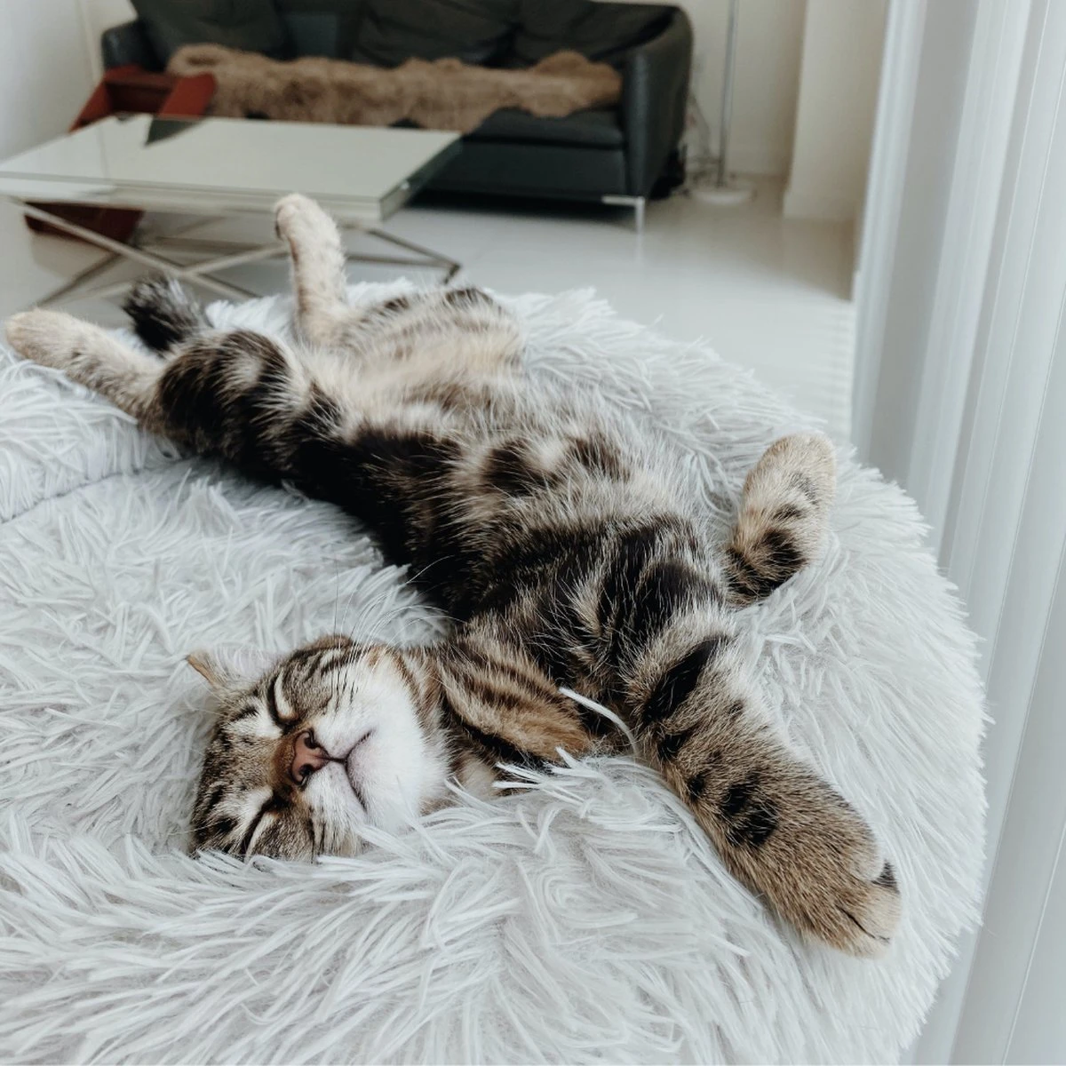 Alleen het beste voor je trouwe vriend! Onze pluche donut hondenmand creëert een rustige, rustgevende omgeving met een zachte, stevige voering van imitatiebont. Van korte dutjes tot een goede nachtrust, je zult er versteld van staan ​​hoe kalm en uitgerust je hond zich zal gedragen na het rusten in een donzige hondenmand!