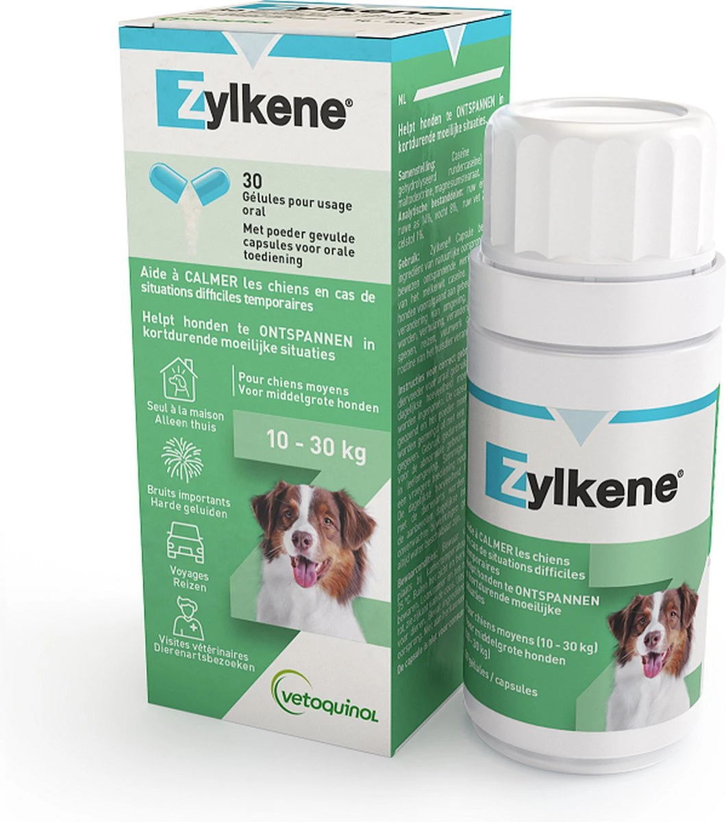 - Langetermijn gebruik: Geef Zylkene dagelijks gedurende 1 maand en evalueer nadien het effect. Het is aan te raden om bij langdurige stressvolle situaties ook steeds contact op te nemen met een dierenarts of gedragstherapeut.